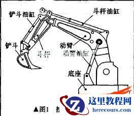 以WYL-3.5型挖掘机为例,该挖掘机所采用的反铲工作装置,主要由动臂、斗杆、铲斗以及动臂油缸、斗杆油缸和铲斗油缸组成。其基本结构如图1所示。