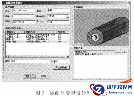 对零部件进行变型设计时,首先检索零部件主模型,在满足条件的零部件主模型的基础上,通过修改零部件主模型的可变参数,自动生成与零部件主模型相似的零部件图形。生成零部件图形后,设计人员对零部件图形进行检查,如果与设计要求一致,则把零部件保存到设计资源库中,同时对零部件进行分类。若生成的零部件图形与设计要求不一致要重新设计。新生成的零部件与零部件模型共用同一图形文件,只是在图形文件中添加一个配置,其零部件属性保存到图形文件的配置属性中,这样可减少零部件图形文件的数量,从管理的角度便于保证数据的一致性。