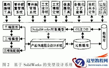 通过SolidWorksAPI可开发相应的应用系统来扩展系统的功能。本系统各应用程序开发工具采用VisualC++、VisualBasic和 VisualC#,各应用程序与SolidWorks的接口插件开发采用VisualC++,开发接口采用基于OLEDB的ActiveX技术。所开发系统的结构如图2所示。