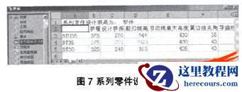 (4)对应着同一参数,输入BT30和BT35的不同的数值,完成以后.点击表格以外的任一地点,就可以退出"系列零件表"。所建系列零件表如图7所示。