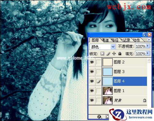 把图层4拖到图层3下面,并将其混合模式改为颜色。图层关系如图所示: