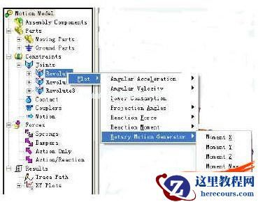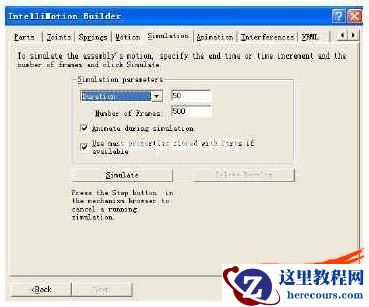 此外,还可将运动仿真的效果直接输出为影视文件。在Motion的下拉菜单中选取“Export Results”按钮后,点击“To AVI Movie”按钮,即可将运动仿真的影视文件存储在指定的目录。