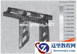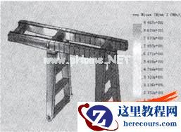 通过对以上结果的分析,最危险的为工况2,最大应力部位位于跨中,值为133.8MPa,小于218MPa,这里的最大应力包括应力集中部位的应力值,在非应力集中处,即使应力较大区域处的应力值也远远小于这个数值,另外通过4个工况最大位移在悬臂端,值为8.7mm,悬臂长13.5m,相应的许用挠度值为13500/800=16.9mm,也处在绝对安全的范围内。从结果来看,可以对启闭机的主梁和门腿进行优化。