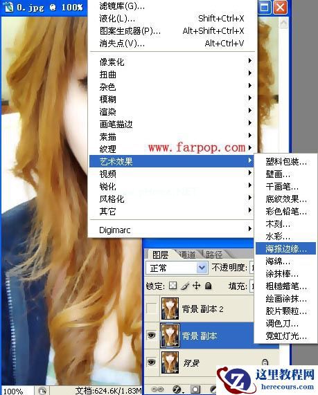 5、选择菜单栏中的滤镜-->艺术效果-->海报边缘.。