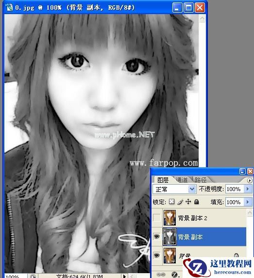7、将背景副本图层去色 ,快捷键 Shift+Ctrl+U 。