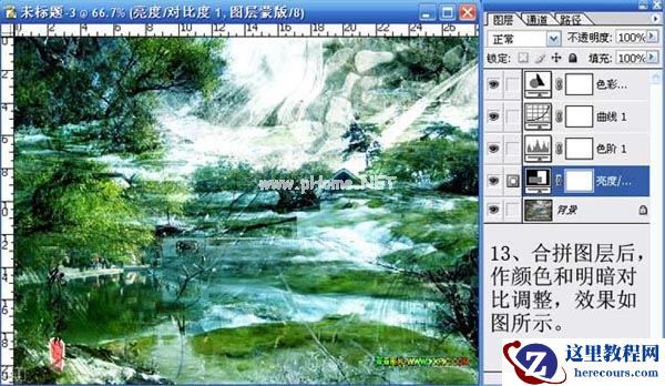 13、合拼图层后,作颜色和明暗对比调整,效果如图所示。