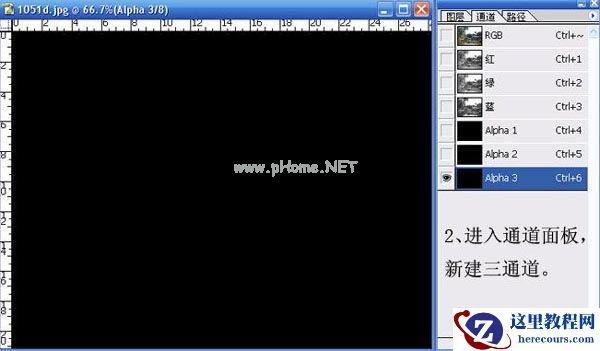2、进入通道面板,新建三通道。