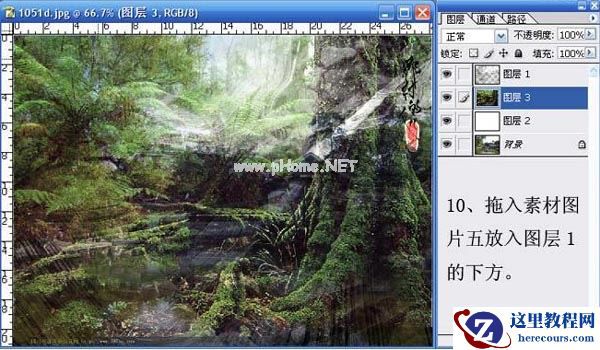 10、拖入素材图片五放入图层1的下方。