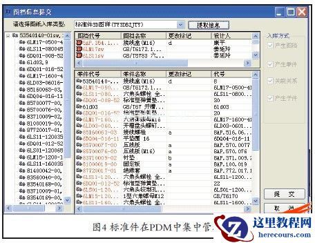同时,企业以前在P D M系统中积累了大量的通用件信息, 如果在三维C A D模型生成后重新再输入一遍,将增加设计大量 的重复性劳动,并可能出现人工错误。我们开发的标准件通用 件库可以实现从P D M系统中调用已有的二维图文档属性自动填 写到SolidWorks生成的三维模型中,然后再提交入PDM系统中统一管理,如图4所示,这大大减轻了设计人员零件属性填写的工作量。