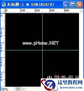2、在背景图层填充黑色。在画布横纵向分别拉参考线到画布中间位置。