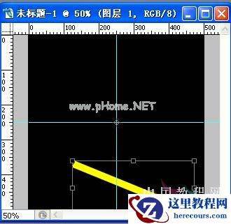 3、新建图层1,工具箱中的矩形选框工具,画一长方形,并填充RGB黄。取消选区。并自由变换。如下图,按回车确定变形。