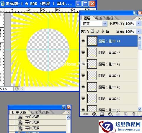 5、按复合键shift+ctrl+alt+T,复制并变换图层1,如下图。合并除背景图层外的所有图层,命名图层1。