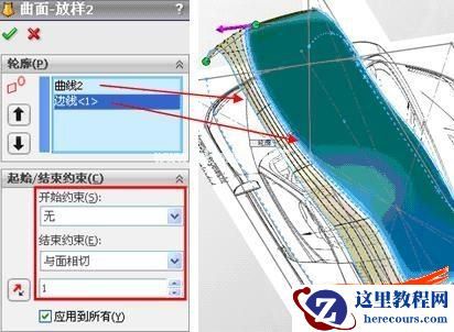 在整个建模过程中,用到最多的命令为“曲面放样 ”