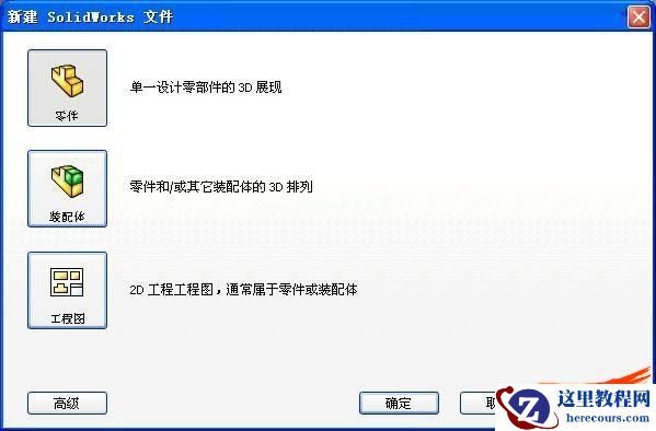 2)在弹出的“新建Solidworks文件”对话框中单击“零件”按钮,然后单击“确定”按钮,如图2所示。