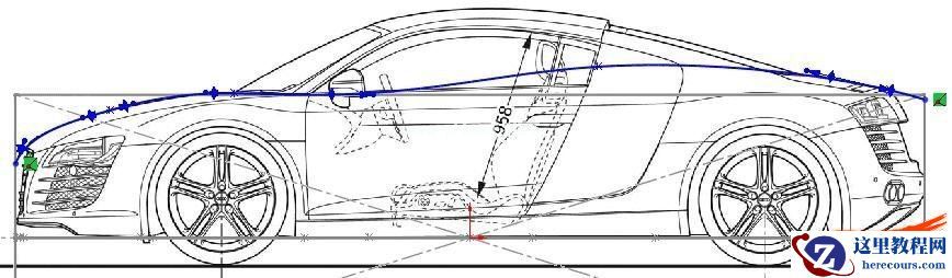 在SolidWorks中利用三视图进行汽车建模的一般方法是:首先将汽车视图分别导入到相应基准面作为草绘的参考,然后找到各视图中对应的轮廓线,进行投影形成空间曲线,最后进行放样等操作。限于篇幅,本文将以audi R8为例介绍汽车壳体建模的大致过程,细节部分省略,留给读者们自行完善。