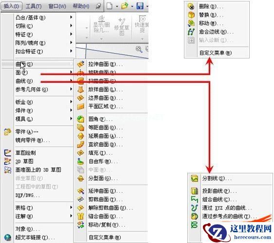 图31 曲线、曲面、面命令分布在“插入”菜单中