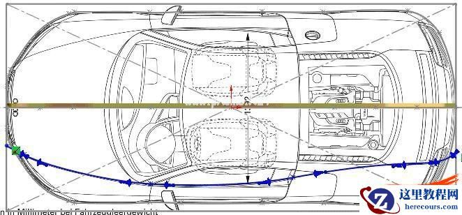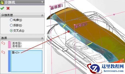 13)通过后轮中心新建与右视基准面平行的基准面,然后参考步骤9将步骤7中完成的曲线再次进行分割,如图21所示。这样做的目的是为后续的曲面填充作边界线的准备。然后分别在新建的基准面和上视基准面上作合适的曲线。