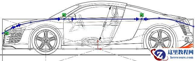 完成曲面放样。结果大致如图28所示,这样,汽车外壳的概貌已呈现在我们面前。至此建模过程告一段落。