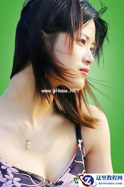 从原图可以看出人物的背景有一定的层次,不过下面的头发部分跟背景颜色差别不大,处理的难度较大。不过很多鼠绘高手可以轻松画出来。不过也可以慢慢涂出来。本文重点介绍人物右边肩膀上头发的勾图方法。