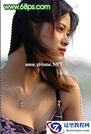 2、把背景图层的人物主体部分用钢笔工具勾出来,复制到新的图层,移到图层的最上面,如图4。