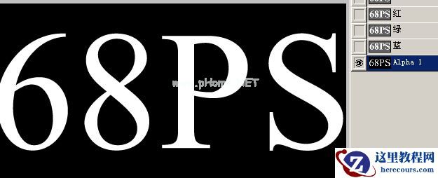 2.删格化图层,调出文字的选区,然后回到通道控制面版,新建一个新通道填充白色如图3,接着选择菜单 : 滤镜 > 模糊 > 高斯模糊 数值为7 效果如图4