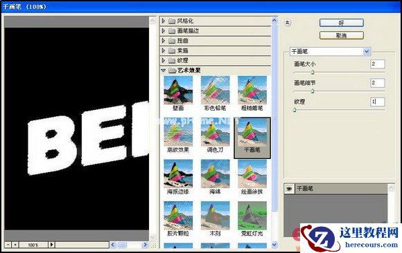 7、再执行菜单栏中的“滤镜”“艺术效果”“干画笔”命令,在弹出的干画笔对话框中设置参数如图06所示,图像效果如图07所示。