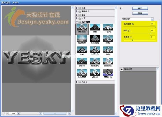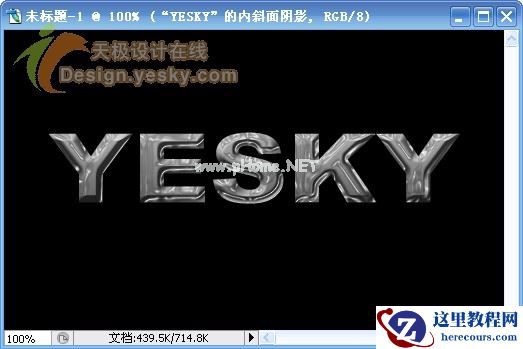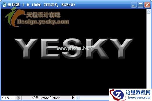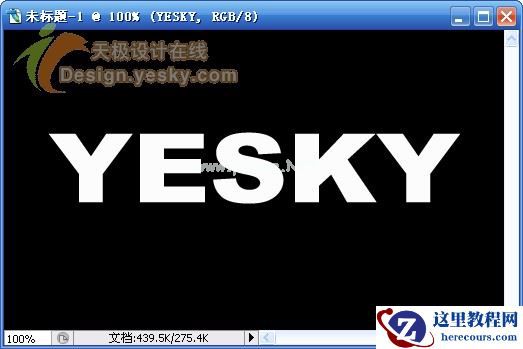 1.新建一文档,大小自定,背景设置为黑色,输入文字“YESKY”,设置字体为较粗的字体,例如这里使用的是“Arial Black”,文字的颜色设置为白色,如图1所示。