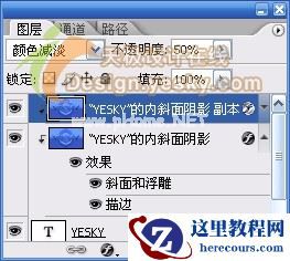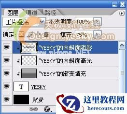 4.选中图层调板中最上面的3个图层,即由图层样式得来的图层,按快捷键Ctrl+E合并图层。