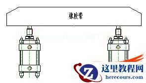 压紧机构主要的作用是使链轮上的橡胶块与聚乙烯管道压紧,从而能产生较大的摩擦力,带动管道向前运动,这一运动主要由气动装置来实现,如图2。