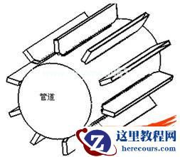 合理地选择牵引装置应根据管材的最大直径为依据,以下是各种牵引装置的最佳应用场合。由于设计的牵引装置主要是生产1200mm的聚乙烯管道,所以根据经验采用十橡胶带的牵引装置,保证有足够的牵引力和牵引速度,确保生产的正常进行。要保证各个橡胶带的牵引力大小相对于管道一致,避免管道由于受力不均而产生变形现象,所以橡胶带的分布要平均,其相对管道的分布情况如图3。
