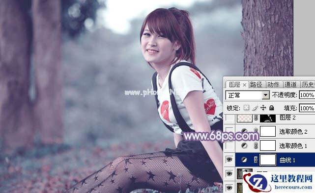 2、创建曲线调整图层,对RGB、红、绿、蓝通道进行调整,参数设置如图2 - 5,效果如图6。这一步适当增加图片暗部亮度,并给图片暗部增加蓝色。