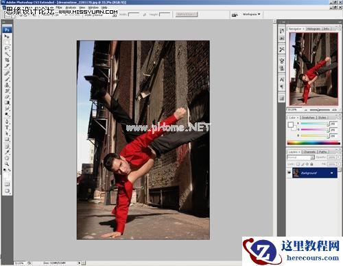 1、将原图载入PHOTOSHOP 。说明:本教程所讲述的技巧可能更适合于人物处理而不适用于风景!