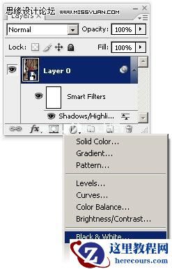 4、接下来我们要添加一个照明效果,点击图层面板下面的创建调整图层按钮,然后选择"黑白"。