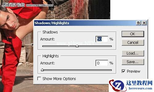 3、选择图像-阴影/高光,将滑块调整至50%!