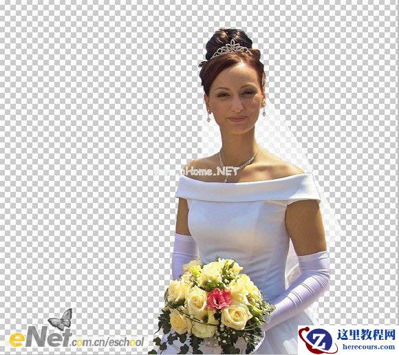 本教程介绍不很很复杂的婚纱照片的抠图方法。思路把人物及婚纱分开来抠。人物部分基本上用钢笔工具即可。透明的纱巾部分,先抠出整体,然后再再通道里面调整,再进行调色及细节处理即可。