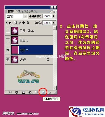 2、在背景图层上面新建一个图层,填充颜色:#A6306C。