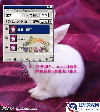 1、打开原图素材,按Ctrl + J两次,得到图层1和图层1副本。