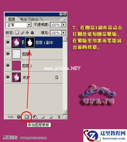 6、给图层1副本加上图层蒙版,用黑色画笔把背景部分擦掉,完成最终效果。