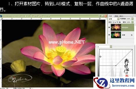 1、打开原图素材,选择菜单:图像 > 模式 > Lab颜色,然后把背景图层复制一层,按Ctrl + M调整曲线,选择a通道,参数设置如下图。