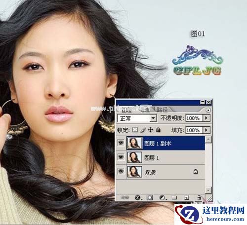 01、打开图片,ctrl+j两次,分别得到图层1和图层1副本。见图01
