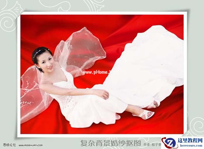本教程主要应用CS3的新功能,扣出复杂的背景婚纱,我们来看看作者的制作过程吧。