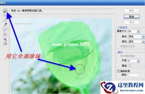 用左上角的边缘高光器工具,把要抠出的玻璃杯全部涂抹上。