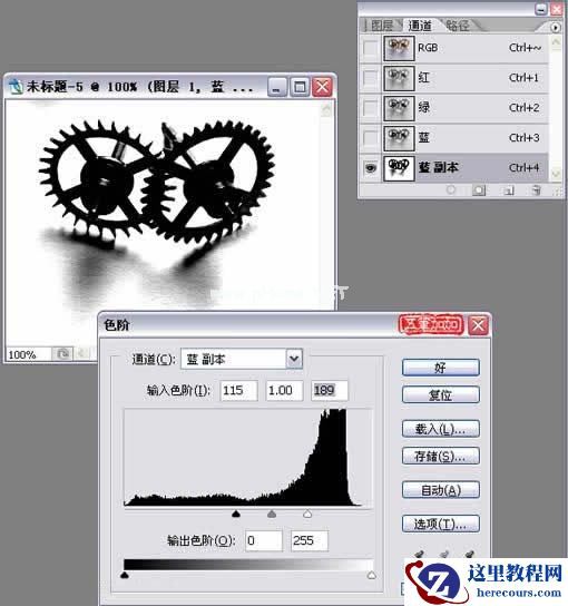 2.第二步肯定是用通道抠罗,那我们开始吧。重制蓝通道,色阶调下下。见图2。