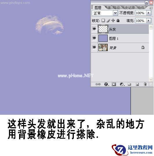 3、这样头发就出来了,杂乱的地方用背景橡皮进行擦除。