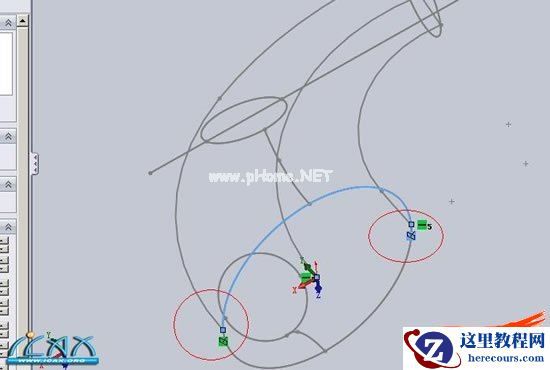 1先根据提供的线框,构建轮廓,这里主体部份,选用曲面扫描来实现,首先构建扫描路径和引导线,引导线添加中点选项,图中红色圈出,大概位置如图,这里取值R55