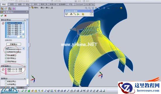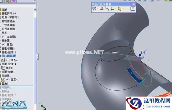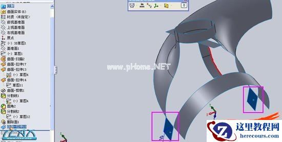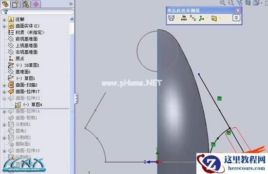 12曲面拉伸、紫色线框所示,。。这里我们将图中红色所示线条取名。。线条AA