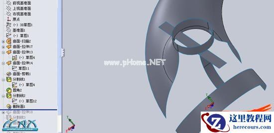 11,根据建立的分割线,删除多余曲面,