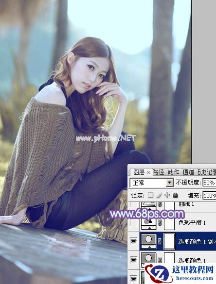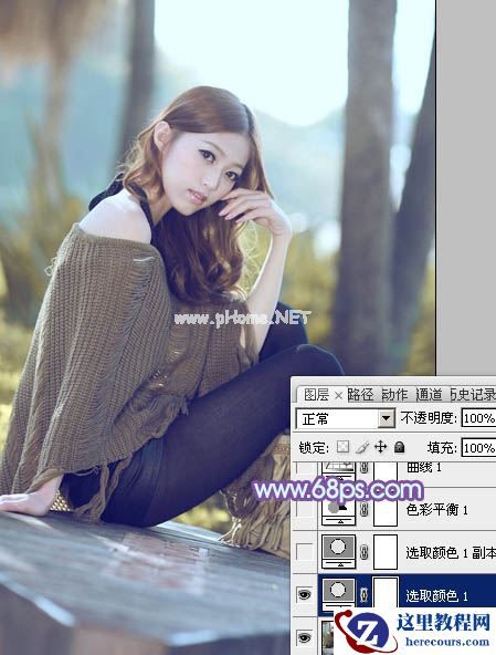 Photoshop打造柔和冷色效果的树林中美女照片调色教程