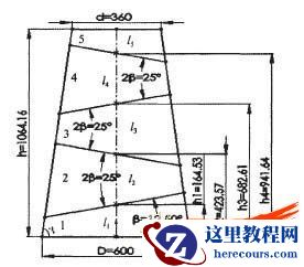 已知条件:D=600mm,d=360 mm,R=600mm,λ=100°,N=5。