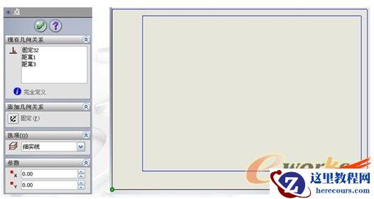 将外框左下角端点坐标参数设为(0,0),添加“固定”几何关系